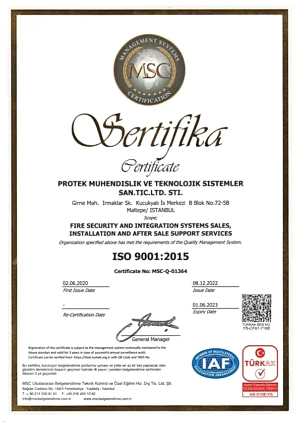 Uluslararası nitelikte, Türkiye ve bölgesinde “Yangın-Güvenlik-Entegrasyon” sistemleri alanında en yenilikçi “Teknolojik” çözümleri “ulusal” ve “uluslararası” standartlara (EN, NFPA, IMO vb.) uygun kalite belgelerine (LPCB, VdS, UL, FM vb.) sahip ürünler sunarak faaliyet göstermekteyiz.